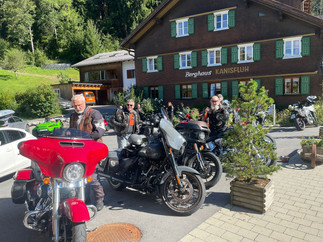 Es ging über Landeck hinauf zum Arlbergpass. Dort war erstmal lange Pause, denn der Hunger wollte gestillt werden. Auf dem Pass herrschte sehr reger Verkehr, der Grund war wohl die Sperrung des Tunnels. Über den Flexen-, Hochtannberg- und den Schröckenpass fuhren wir später auf schmaler und kurviger Straße zu Kaffee und Eis zum Berghaus Kanisfluh. Schön war es dort. Das letzte Stück unserer gemeinsamen Fahrt führte durch den Bregenzer Wald hinauf nach Sulzberg und weiter über Weiler zurück zum Startpunkt Amtzell-Geiselharz. Von hier aus fuhr jeder zu seinem jeweiligen “Heimathafen“.